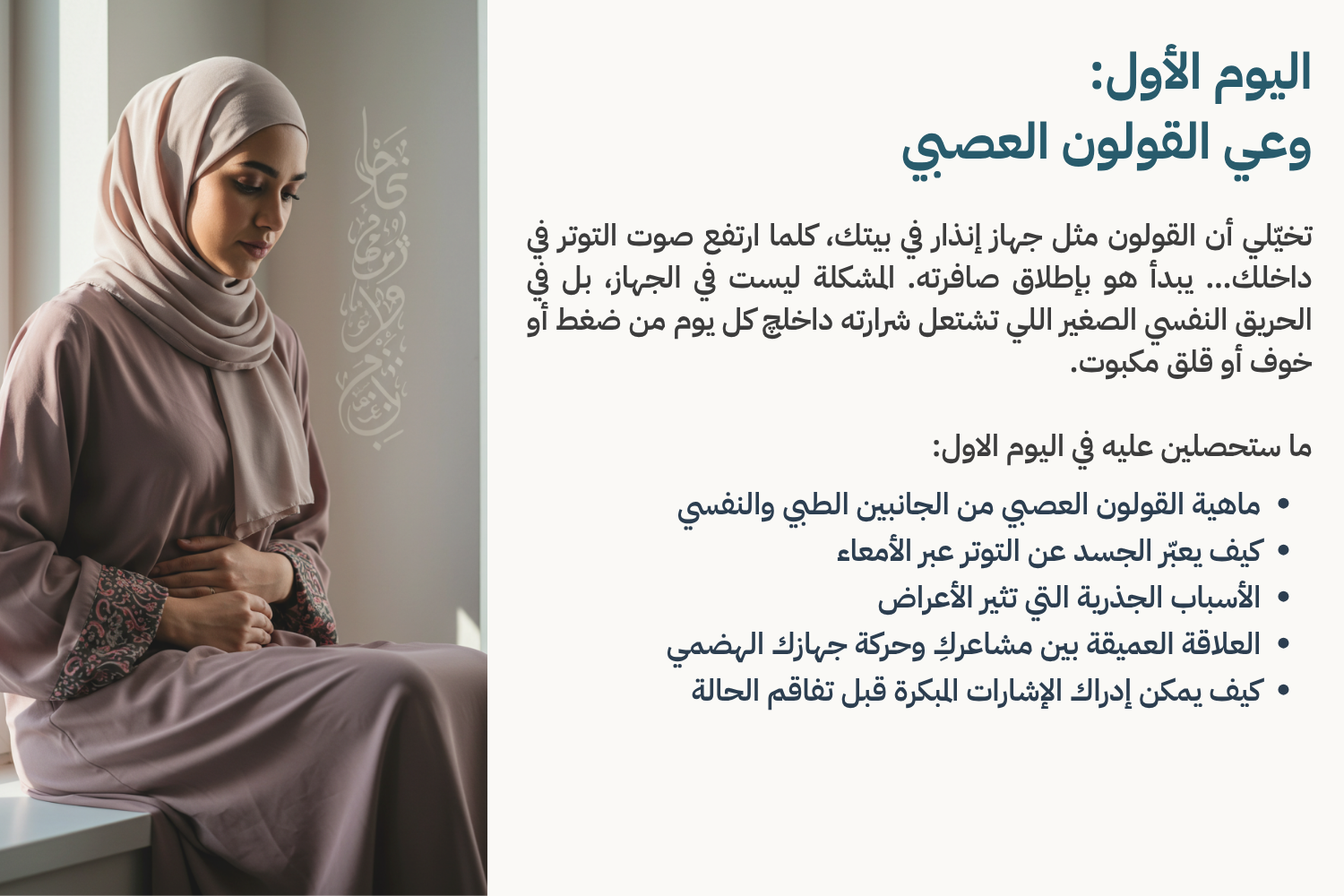 لتساعد النساء على التحرّر من أعراض القولون العصبي الناتجة عن التوتر، القلق، وضعف حب الذات.